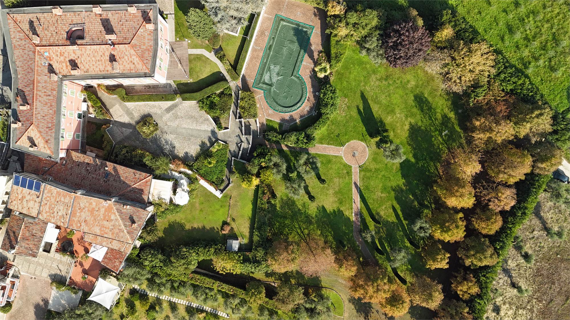Il palazzo, immerso in un ampio parco piantumato, dispone di un'ampia piscina per sole 11 unità abitative, uno spogliatoio, un bagno e parcheggi comuni per gli ospiti.