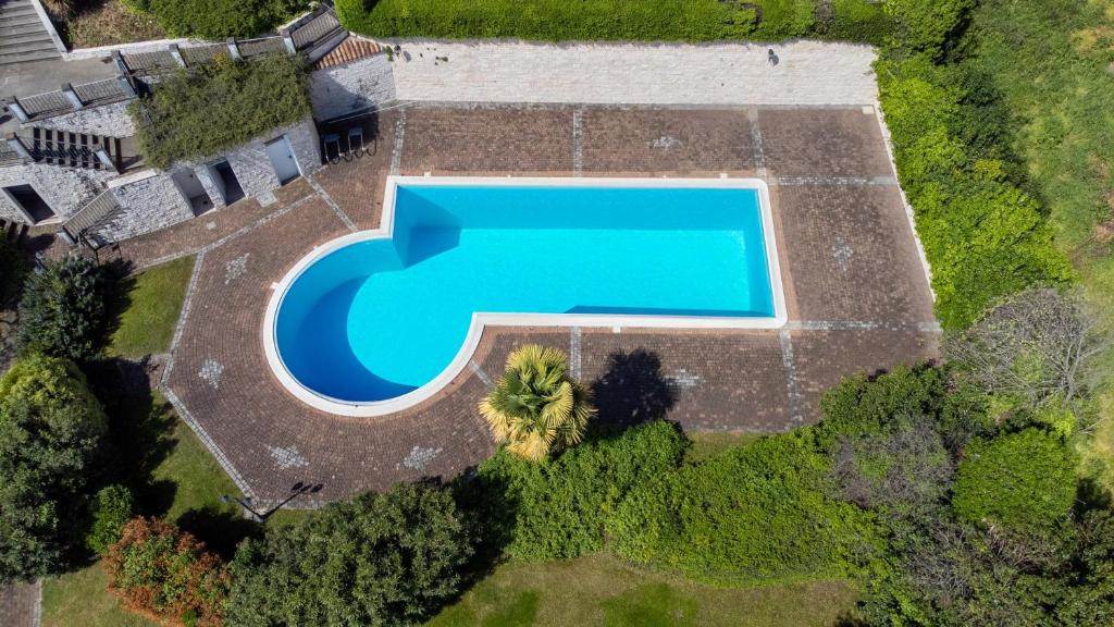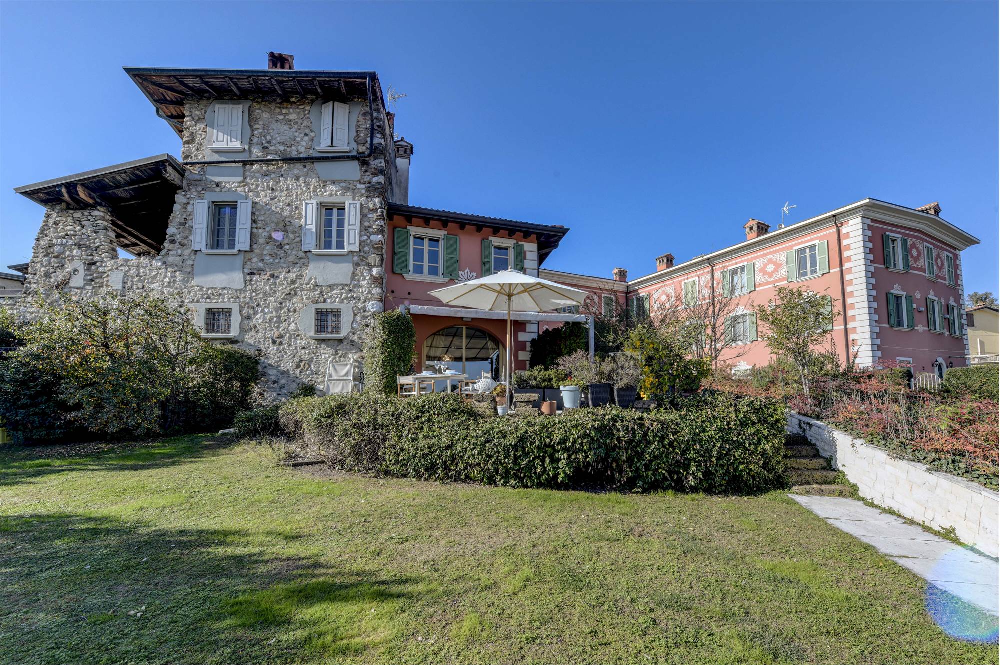 In un contesto di assoluto pregio, proponiamo in vendita una villetta su due livelli con vista lago, inserita in un antico monastero finemente ristrutturato con parco e piscina condominiale.