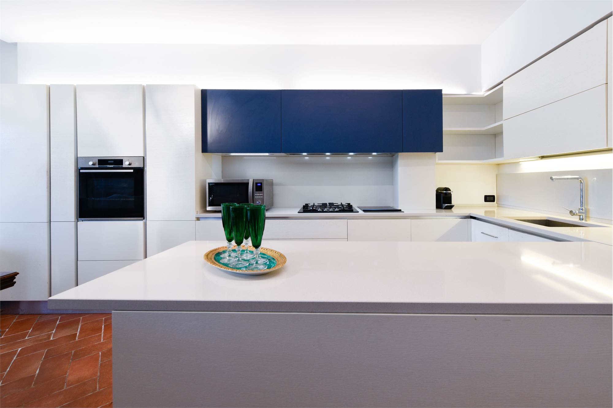Le finiture di alto livello conferiscono fascino e raffinatezza: pavimenti in cotto nella zona giorno, parquet e travi a vista sbiancate nel reparto notte, colonne in marmo negli spazi esterni. L’abitazione è dotata di riscaldamento autonomo, impianto d’irrigazione automatica e sistema d’allarme perimetrale.