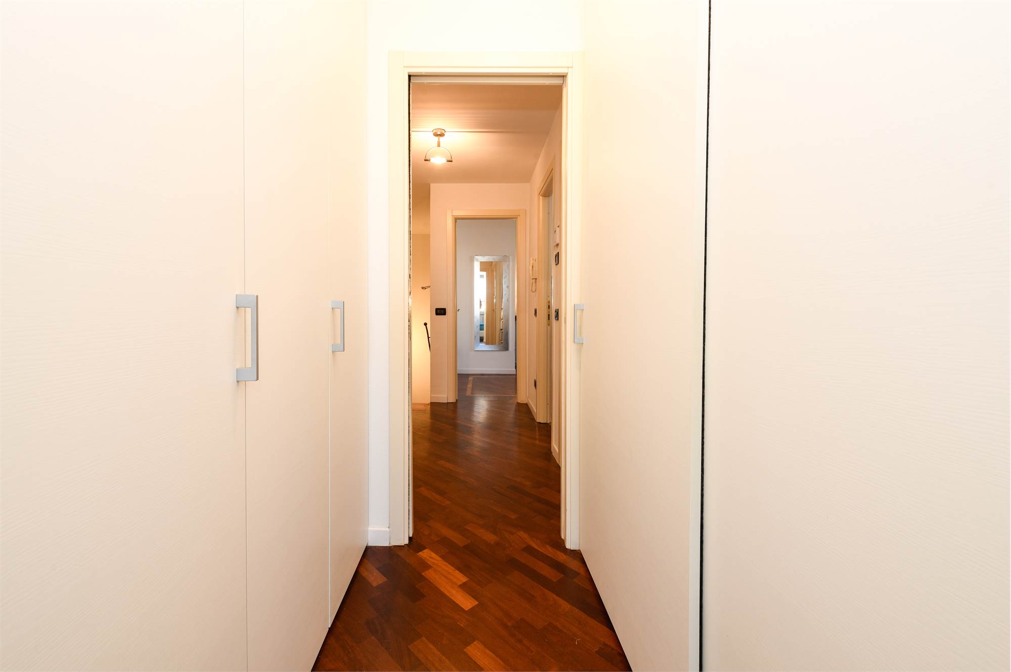 L’elegante accesso al palazzo conduce, attraverso una scenografica scala in marmo, all’abitazione, impreziosita da un ampio giardino privato di circa 400 mq.