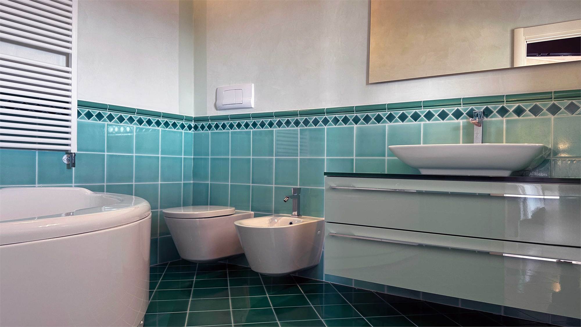 - Piano Interrato: grande taverna con camino, studiolo, vano tecnico e ampia lavanderia con ulteriore doccia.