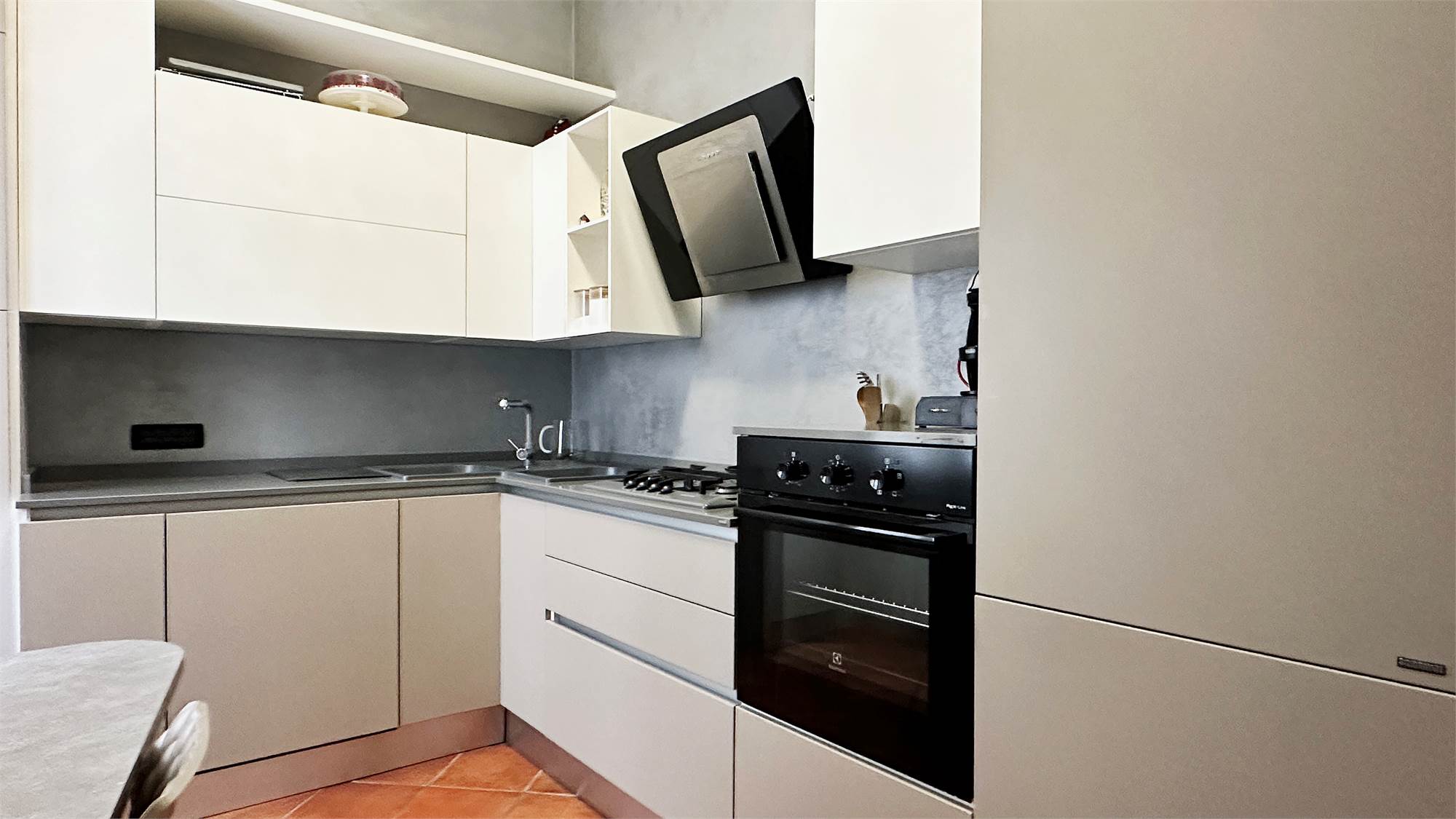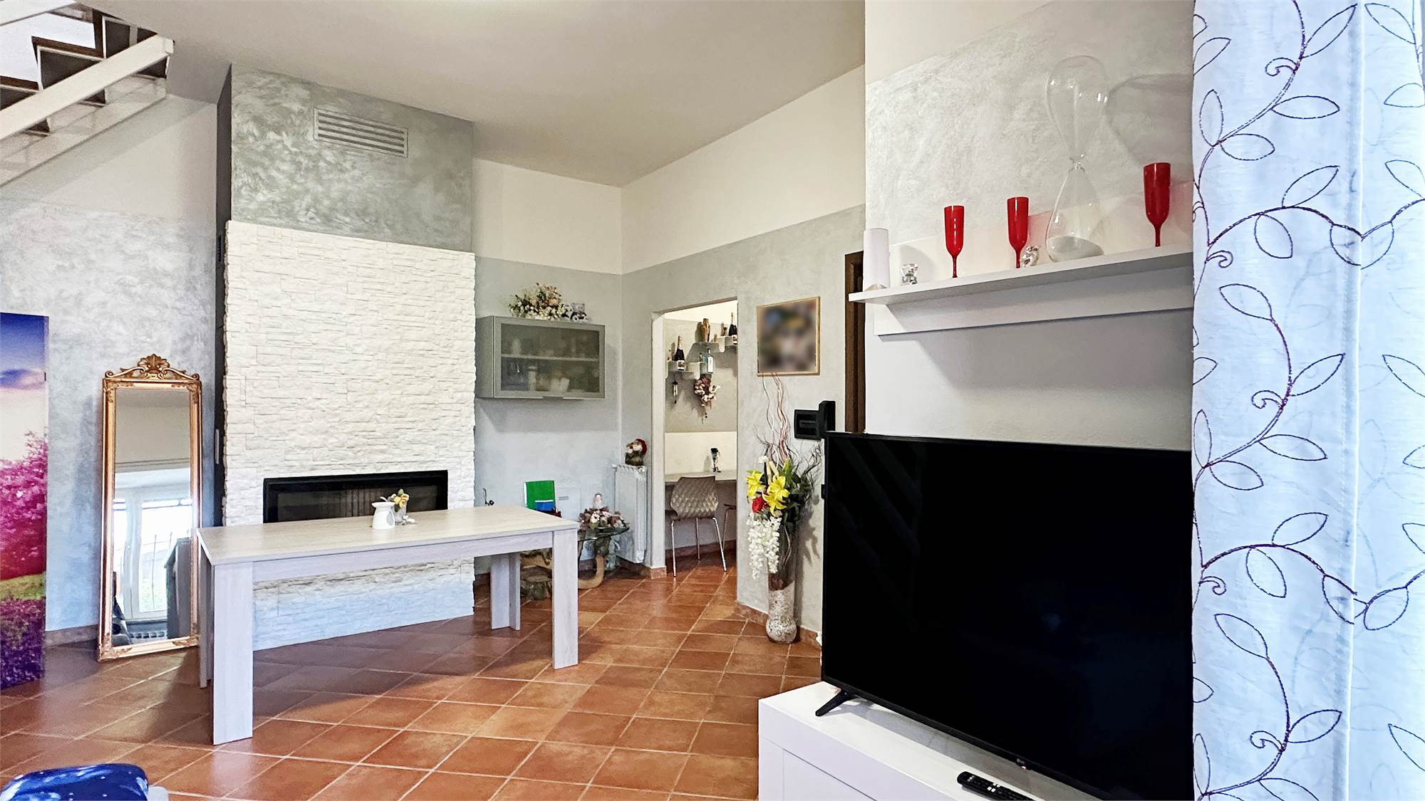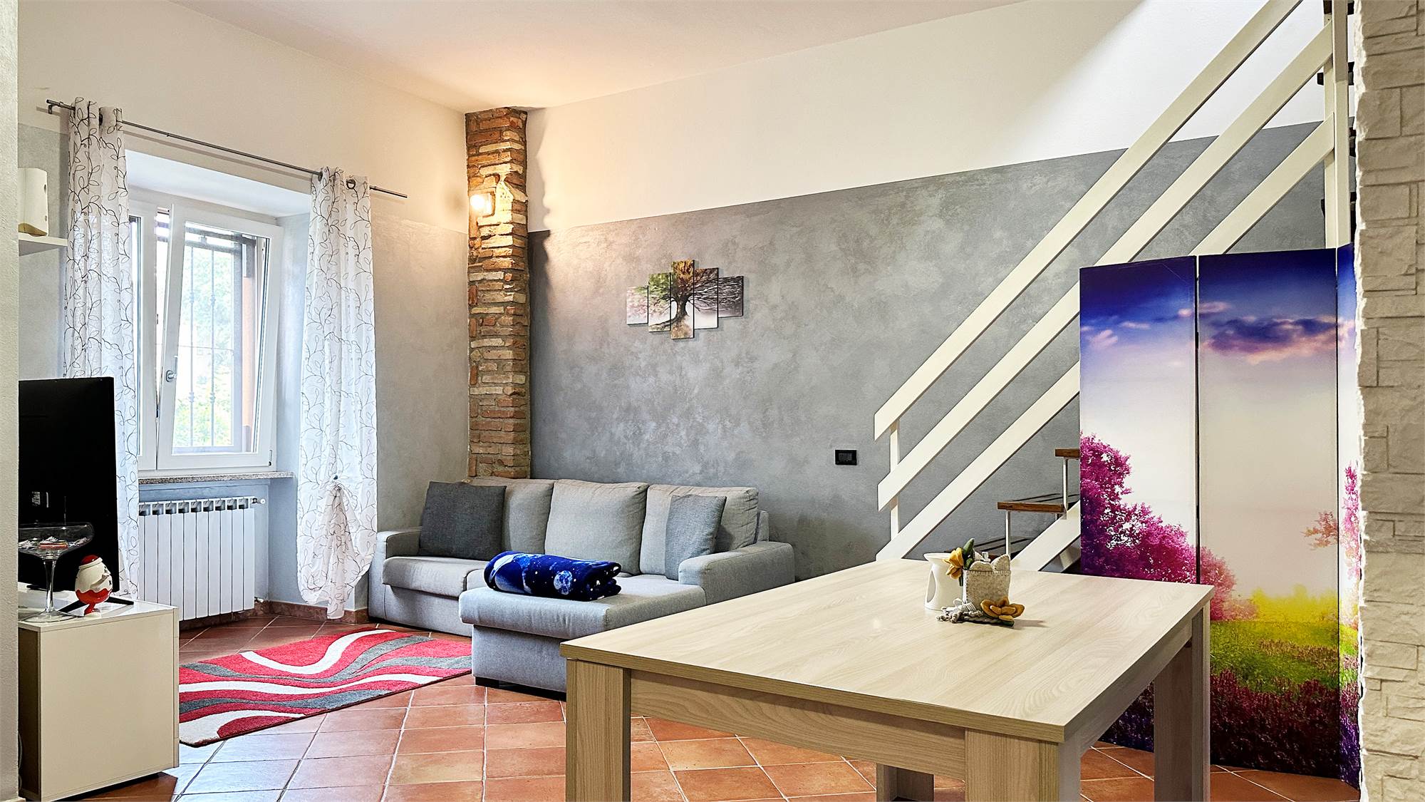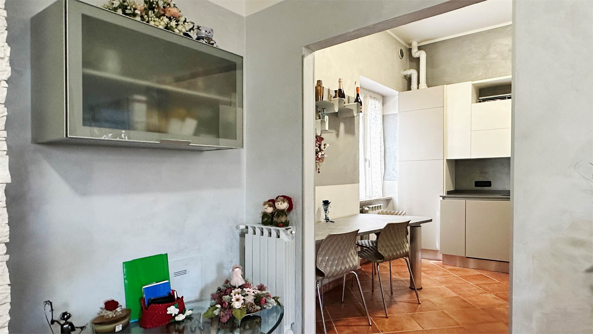 al piano terra troviamo un accogliente soggiorno con cucina separata, ideale per una gestione pratica degli spazi;