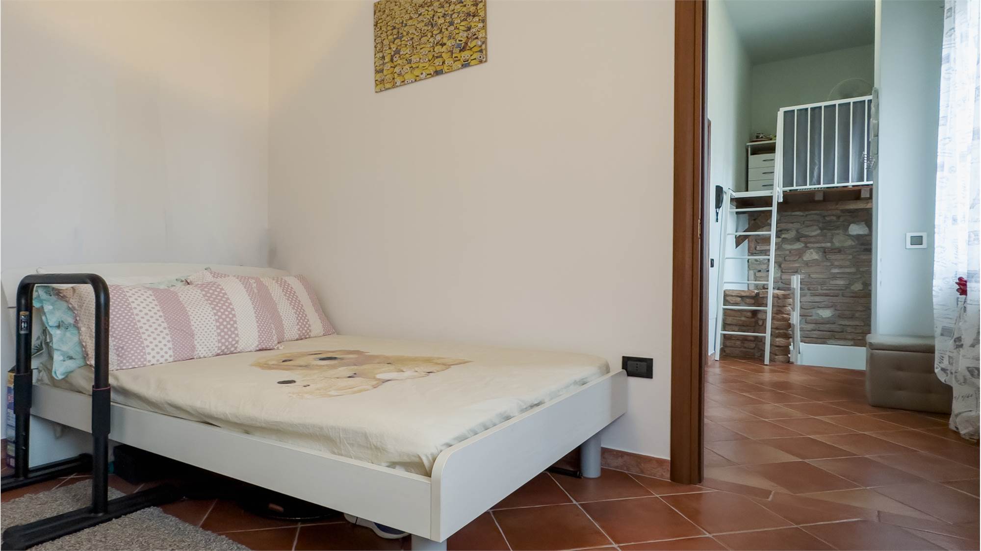 tramite una comoda scala interna, che cela un utile ripostiglio, si accede al primo ed ultimo piano, dove si sviluppa la zona notte composta da due camere da letto e un bagno di generose dimensioni.